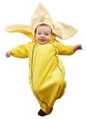 While carefully trying to decide which costume was least skanky for a baby, I somehow managed to do one worse. The costume I ended up buying her (which I thought was so funny and innocent) actually makes her a giant, yellow wiener banana. The image of her dad and myself dressed as monkeys carrying around our little banana was too cute for words. I wasn’t even thinking how she’d be a huge yellow phallus. You think it would’ve dawned on me when I put the “tip” of the banana on her head. She’s going to be so embarrassed of the pictures when she’s older…so maybe I did do something right?