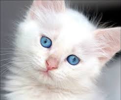 I’m surprised I didn’t wind up a cat-hoarding old lady because I definitely went through a cat phase when I was young. My ultimate cat was a white-haired, blue-eyed kitten. See below:
